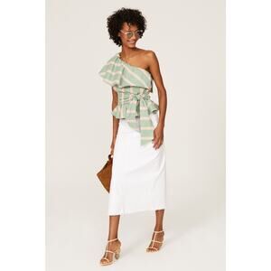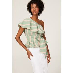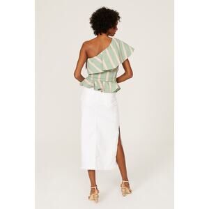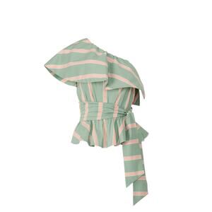 Lavish ruffles elevate the drama of this striped Stella Jean top that shows off your shoulder and your cinched waist.