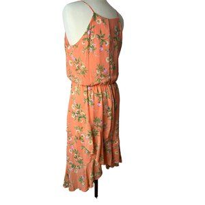 Stella & Julie Dress Orange Floral size 12 asymmetric hem lined sleeveless
