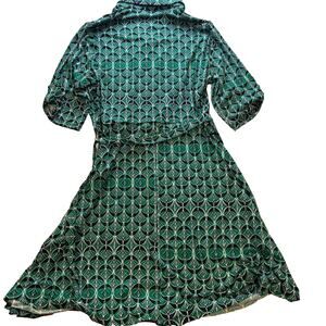Stella & Julie Wrap Dress Green/Black Roll tab sleeve, size 14w Boho Chic