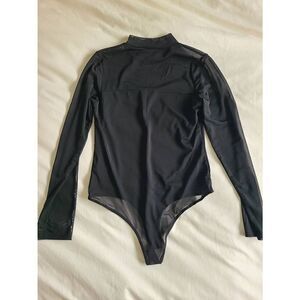 Stella Luce Bodysuit Women's Size Large Black Mock Neck Long Sleeve with Mesh