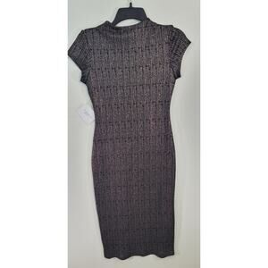Stella Luce Dress Womens Medium Black Metallic Knee Length Sexy Bodycon Chic NWT