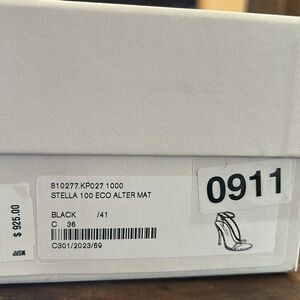 100mm Heel. Faux leather upper. Adjustable ankle strap with hook closure. Faux leather insole. Faux leather sole . Stella McCartney is a vegetarian brand committed to ethical values, and believes that the company is responsible for the resources it uses and the impact it has on people, animals and the planet