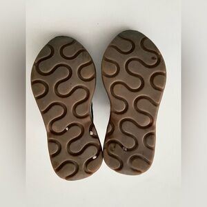 Logo. Faux leather. Hook loop closure. Solid color. Rubber sole. 60% Polyester, 40% Polyurethane.