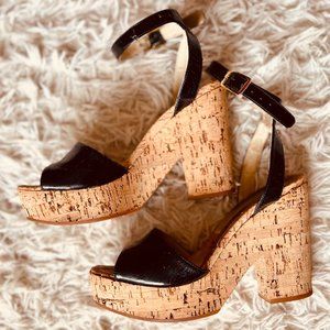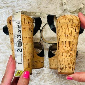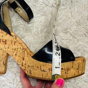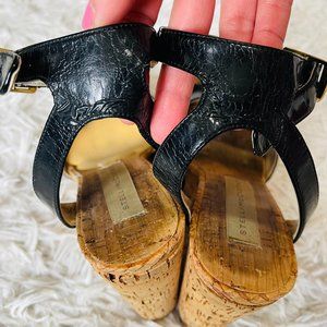 Stella McCartney Black Vegan Patent Leather Cork Platform Sandal Size 37