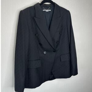 Stella McCartney Black 100% Wool Embossed Double Breasted Button Blazer