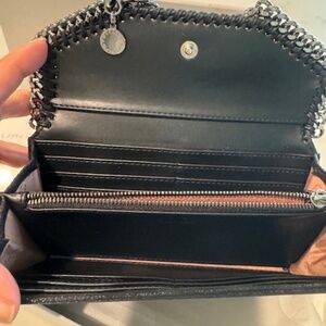 Loved it, but never used. 7-1/2 x 4 in box. Black Stella McCartney Wallet