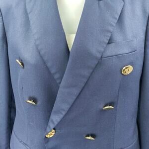 Stella McCartney Blue Gold Long Sleeve Double Breasted Blazer Coat Jacket Sz 14