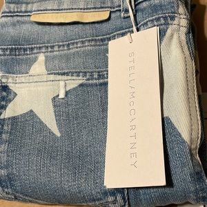 Stella McCartney Blue and Cream Star Print Denim Boyfriend Jeans