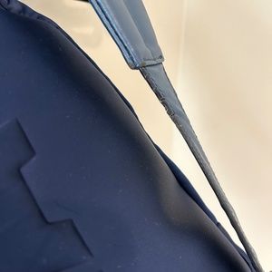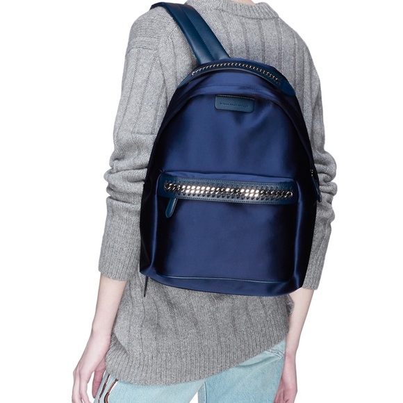 Stella McCartney backpack in blue satin, top handle in blue canvas, two adjustable straps with iconic chain details. Please review pictures for condition.