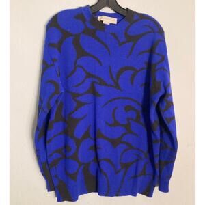 Stella McCartney Bright Blue & Brown Abstract Floral Print Sweater Wool Sz 42 L