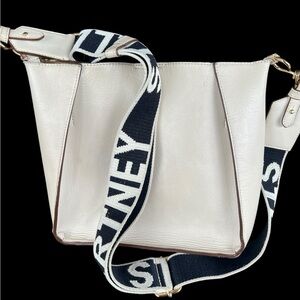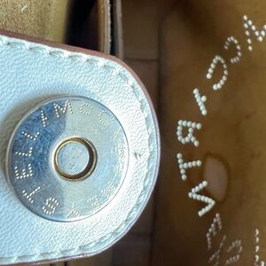 Super cool Stella bag in great condition. The exterior shows no wear and is clean. The suede inside has a large spot other than that clean. The bag features a long wide adjustable shoulder strap.