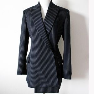 Stella McCartney Classic Pinstripe Asymmetric Wool Blend Jacket Coat Blazer, 38