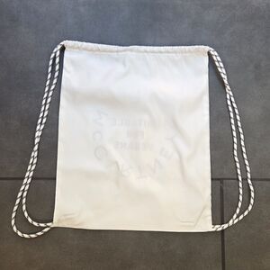 • In excellent condition • White and black colors • Drawstring • 100% recycled polyester • 18" x 14.5"