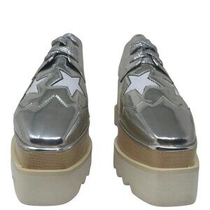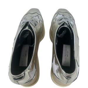 Stella McCartney Elyse Metallic Mirrored Silver Star Patches Vegan Platforms 6