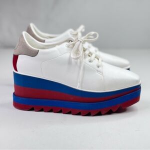 Stella McCartney Elyse platform sneakers white leather red blue striped platform