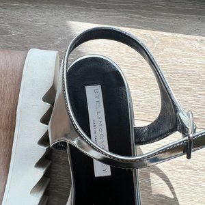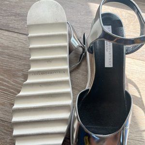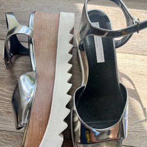 Stella McCartney Elyse star wood platform sandals size 40 bright silver color. New, never worn.