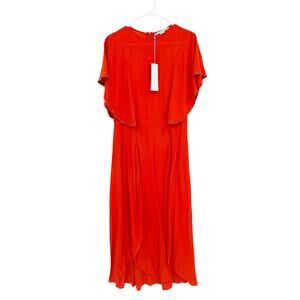 Stella McCartney Embellished Flutter Sleeve Silk Crêpe de Chine Midi Dress 42