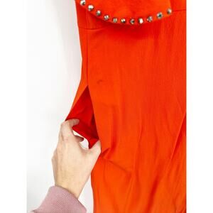 Glistening studs trace the flutter sleeves of a vibrant midi from McCartney's nostalgic collection inspired by '60s silhouettes and '70s-era mega glamour. This season's presentation is a natural continuation of McCartney's recent capsule collection celebrating the release of the 'Get Back' film, which documents the making of The Beatles’ final album.