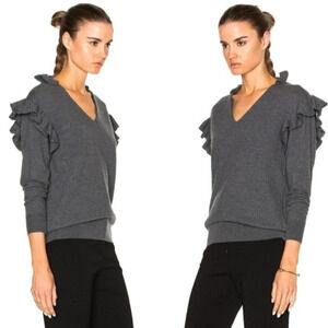 Stella McCartney Sweater Felted Frills Wool Jumper Graphite Gray Womens 40. Italian 40 equivalent to US 4-6. Light piling on the sweater.