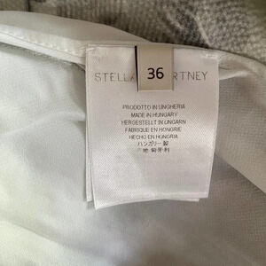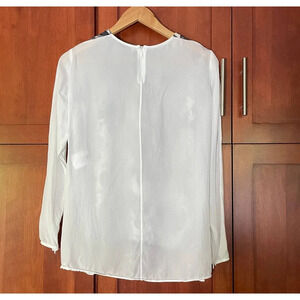 White and gray floral long sleeved blouse from Stella McCartney. Split hem, back and wrist zippers.