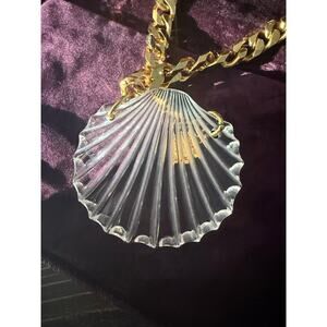Stella McCartney Lucite Shell Pendant Gold Chain Necklace - Designer Jewelry