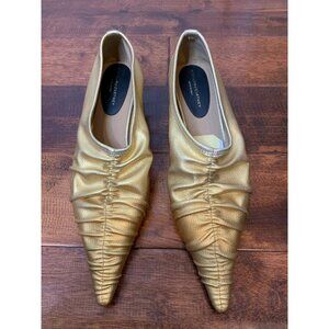 Stella McCartney Gold Elsa Ruched Pointed Toe Kitten Heel Pumps Heels, Size 41