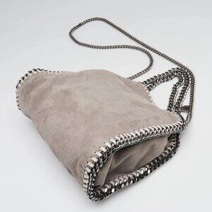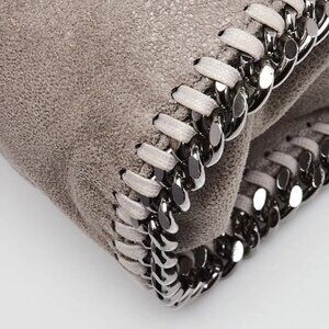 Stella McCartney launched her fashion label in 2001 after serving as creative directing for Chloe. She has a reputation for creating edgy yet feminine designs, while avoiding all use of leather and fur. This trendy Stella McCartney Mini Falabella bag is a must-have everyday tote for fashionistas. This particular bag is crafted out of fabric that has a look and feel of leather. This mini bag can be carried on the arm with its chain top handles or folded and over the shoulder with its longer chain strap. Current retail price is $1055.