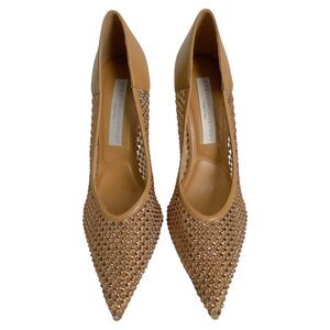 Stella McCartney Iconic Micro Mesh Studded Pumps Heels Tan Size 38.5 / US 8.5