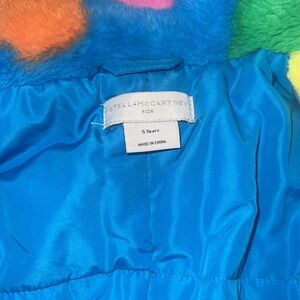Stella McCartney Kids Blue Faux Fur Coat size 5T and matching set pants Print on the side size 6T
