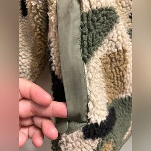 Popular Camo Teddy from Stella McCartney Kids. Sold out in stores. In good preloved condition. Some wear and matting on pockets and wrists, normal for use by a 5 year old. Perfect jacket for spring and fall. Check out pictures for condition. Offers welcomed.