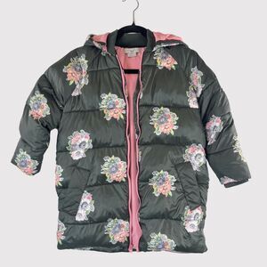 Stella McCartney Kids Girls Jacket Black Floral Puffer Quilted Hooded 8 Years