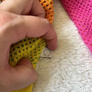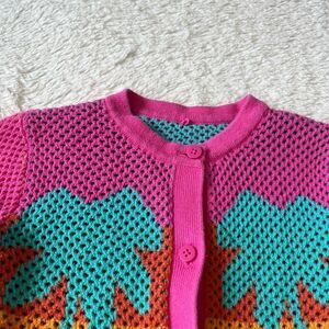 Stella McCartney Kids Palm Tree Logo Multi Color Button Up Cardigan Sweater in pre owned condition. Please view all photos for signs of wear. Size 2T. Pit to pit 11 1/4”, total length 11 1/4”.