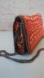Stylish and vibrant, this orange patterned clutch is perfect for any occasion. The chain trim adds a touch of elegance, making it a must-have accessory.