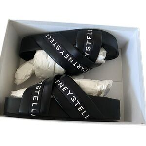 Stella McCartney Logo Platform Slides – Black – Size 38 (US 8)