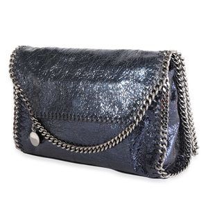 Stella McCartney Metallic Blue Cracked Vegan Leather Falabella Mini Crossbody