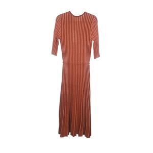 Stella McCartney Metallic Degrade Pleated Knit Midi Dress Striped key hole Sz 46