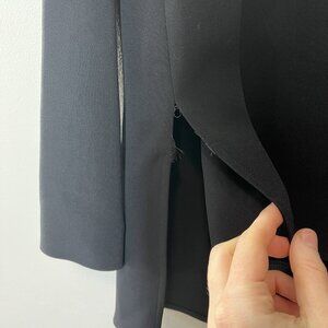 Split hem with a flaw at one of the splits and a small snag on one of the arms