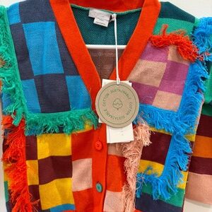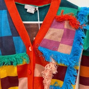 Stella McCartney - NWT Multi Color Fringe V-Neck Long Sleeve Cardigan, Size 5