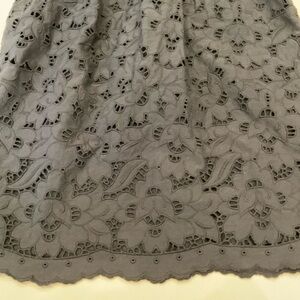 Elegant navy eyelet lace dress. Sleeveless with a V-neckline. Perfect for evening wear.