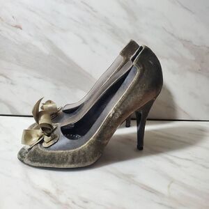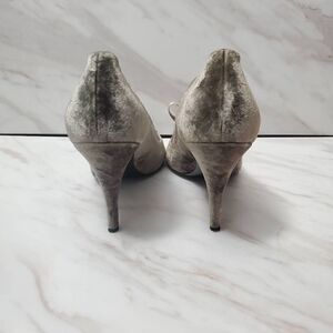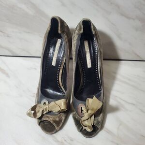 Stella McCartney Olive Green Velvet Bow Peep Toe Heels Size 37 7