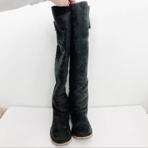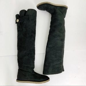 Stella McCartney Over The Knee Shearling Buckle Ugg Black Boots Round Toe Soft 6