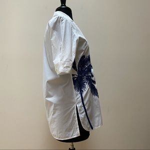 Stella McCartney White Button Down Blouse With Navy Embroidered Palm Trees