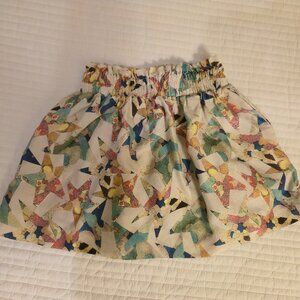 Toddler Girls Tan Stella McCartney Pattern Print Silk Skirt w/ slit pockets and elastic waistband. Designer size 2. Like new.