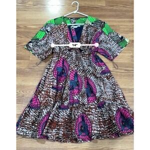The perfect sundress—bold, breezy, and effortlessly chic! The combination of a plunging neckline, swingy silhouette, and ruffled details makes it both flirty and sophisticated. Plus, the African wax print adds such a rich, dynamic texture.