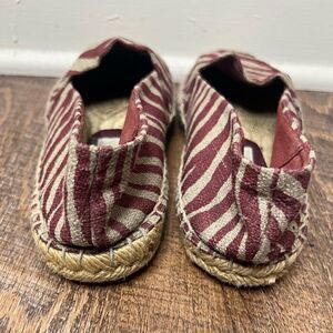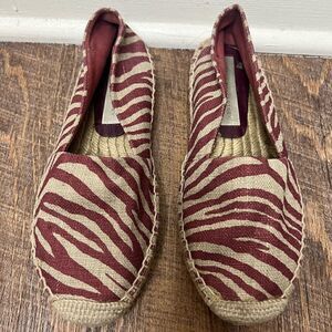 Pre-owned! In Poor Condition Stella McCartney Red/Beige Bordeaux Zebra Print Espadrille Flats In A US Size 6 !