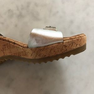Stella McCarthy Silver leather sandals with cork heel. Lightly worn.