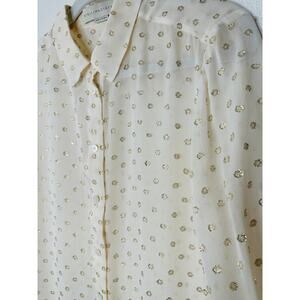 Stella McCartney Sheer Cream Gold Metallic Polka Dot Button Sheer Blouse 44 / L