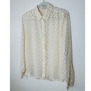 Stella McCartney Sheer Cream Gold Metallic Polka Dot Button Sheer Blouse 44 / L
