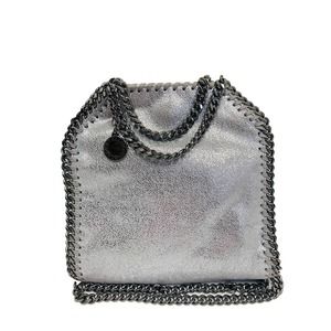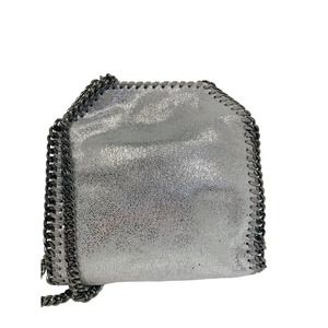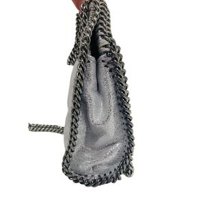 Elegant silver crossbody bag. Features chain detailing. Perfect for any occasion.