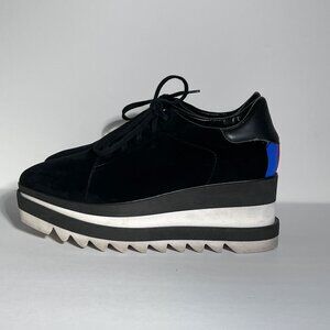 Stella McCartney Sneak Elyse Black Velvet Platform Shoes Sz 38/8